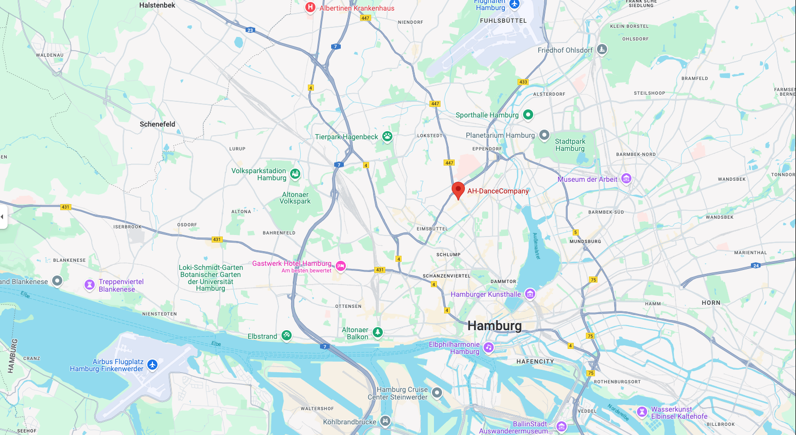 The dance school is located in Kinderwerk Hamburg, Hoheluftchaussee 97 in 20253 Hamburg. The location is central and easily accessible.